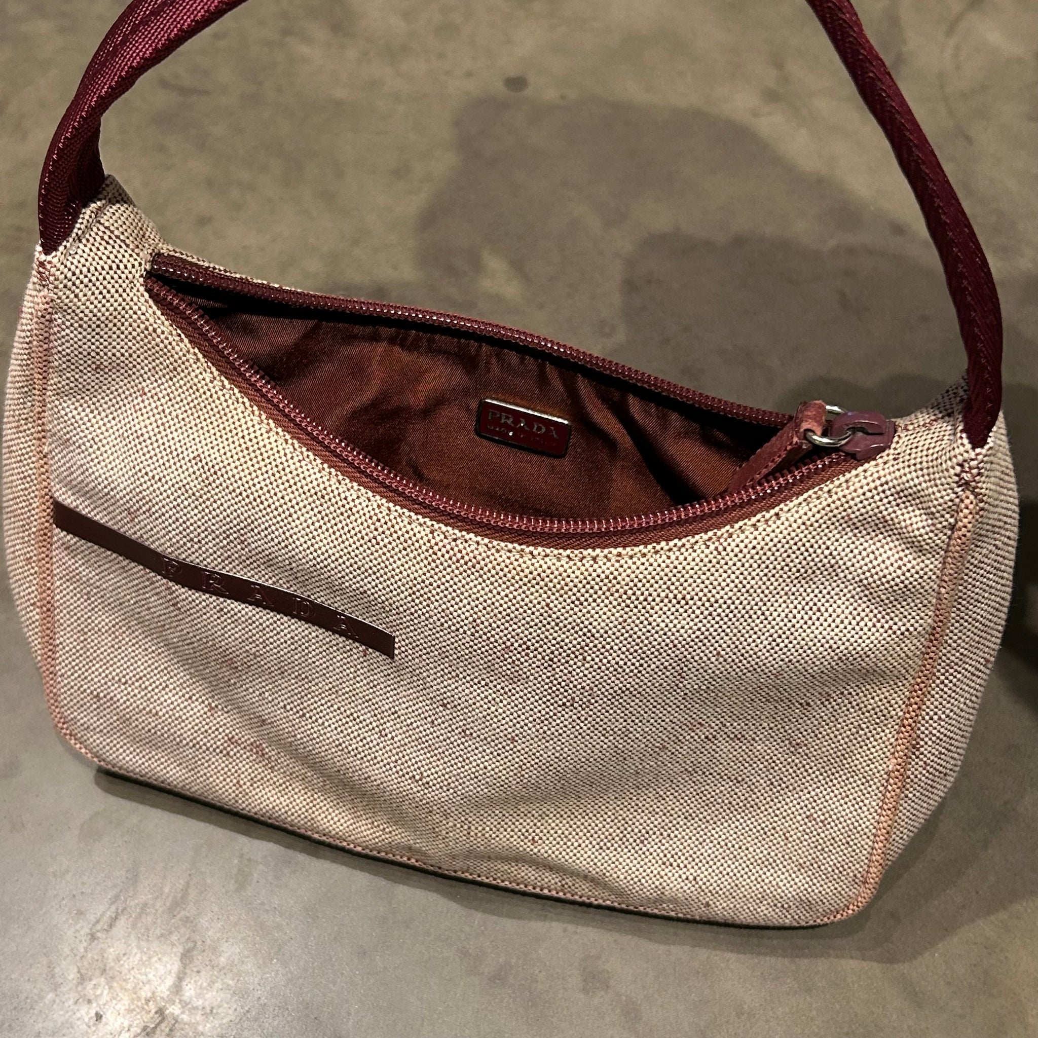 Prada Sport Mini Baguette Shoulder Bag – Beige / Burgundy – 1999